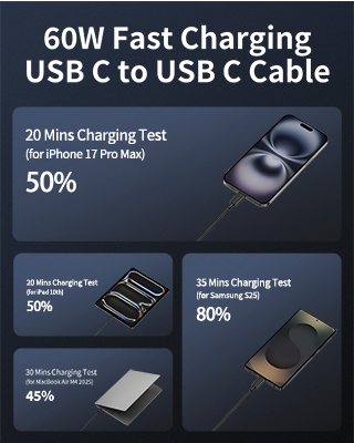Amazon Launch Day:2025-06-30 60W Fast Charging for iPhone 17: JUNVANG USB C cable provides high-speed charging of up to 60W Max (3A/20V) for most all USB-C devices, and support 480Mbps data sync transfer speed. Charge for iPhone 17 up to 50% and iPad 10th up to 50% in just 20 minutes, help you work efficiently 3FT Fast iPhone 17 Charger Cord: 3-Foot length design, convenient for you to charge from a distance on the sofa, in the office, or on the go. Type C charger cord adopting premium wire cores and shielding layer design to enhance anti-interference ability, making charging and data transfer more stable Universal Compatibility: USB C to USB C Cable compatible with iPhone 17/17 Pro/17 Pro Max/Air 2025/16/16 Pro/16 Plus/16 Pro Max/15/15 Pro/15 Plus/15 Pro Max/16e, iPad Pro 13/12.9/11 inch, iPad Air 13/11 inch M3/M2, iPad Air 5th/4th Generation, iPad A16/10th, iPad Mini A17 Pro/6th, MacBook Air/Pro, Samsung Galaxy S25/S24/S23/S22, Google Pixel 9/8/7/6, Moto, LG, Tablet, Android, and more Sturdy & Durability: Built-in laser welding technology ensures that the metal parts are not prone to breakage. The longer mesh tail anti-breakage design enhances the durability of the USB C cord. With 25,000+ times bending test, flexible and durable TPE cable has a longer service life What You Get: 2-Pack 60W 3FT USB-C to USB-C Cable Fast Charger Cord, 2-Year Replacement. Compatible with 20W/40W/45W/60W/100W USB-C Power Adapter (Adapter not included). Note: If you encounter problems with the cable function, please try reverse USB-C plug and try again