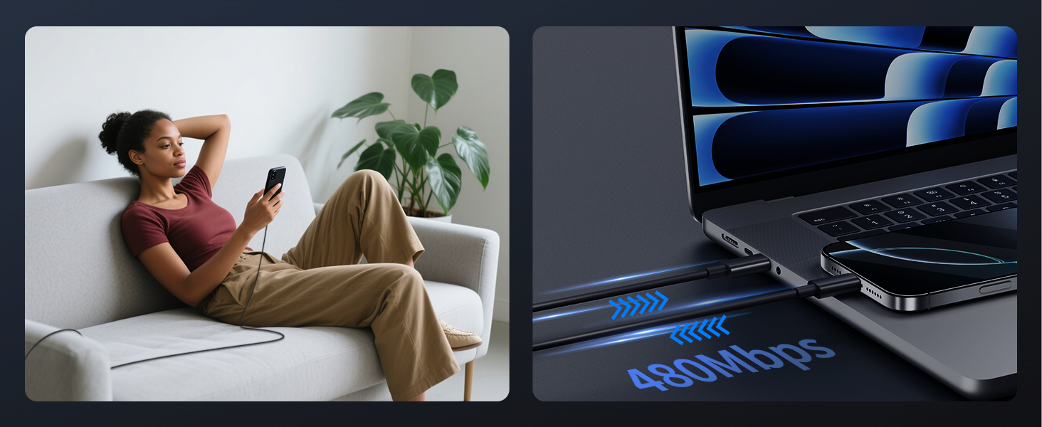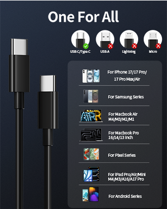 Amazon Launch Day:2025-06-30 60W Fast Charging for iPhone 17: JUNVANG USB C cable provides high-speed charging of up to 60W Max (3A/20V) for most all USB-C devices, and support 480Mbps data sync transfer speed. Charge for iPhone 17 up to 50% and iPad 10th up to 50% in just 20 minutes, help you work efficiently 10FT Long iPhone 17 Charger Cord: 10-Foot length design, convenient for you to charge from a distance on the sofa, in the office, or on the go. Type C charger cord adopting premium wire cores and shielding layer design to enhance anti-interference ability, making charging and data transfer more stable Universal Compatibility: USB C to USB C Cable compatible with iPhone 17/17 Pro/17 Pro Max/Air 2025/16/16 Pro/16 Plus/16 Pro Max/15/15 Pro/15 Plus/15 Pro Max/16e, iPad Pro 13/12.9/11 inch, iPad Air 13/11 inch M3/M2, iPad Air 5th/4th Generation, iPad A16/10th, iPad Mini A17 Pro/6th, MacBook Air/Pro, Samsung Galaxy S25/S24/S23/S22, Google Pixel 9/8/7/6, Moto, LG, Tablet, Android, and more Sturdy & Durability: Built-in laser welding technology ensures that the metal parts are not prone to breakage. The longer mesh tail anti-breakage design enhances the durability of the USB C cord. With 25,000+ times bending test, flexible and durable TPE cable has a longer service life What You Get: 2-Pack 60W 10FT USB-C to USB-C Cable Fast Charger Cord, 2-Year Replacement. Compatible with 20W/40W/45W/60W/100W USB-C Power Adapter (Adapter not included). Note: If you encounter problems with the cable function, please try reverse USB-C plug and try again