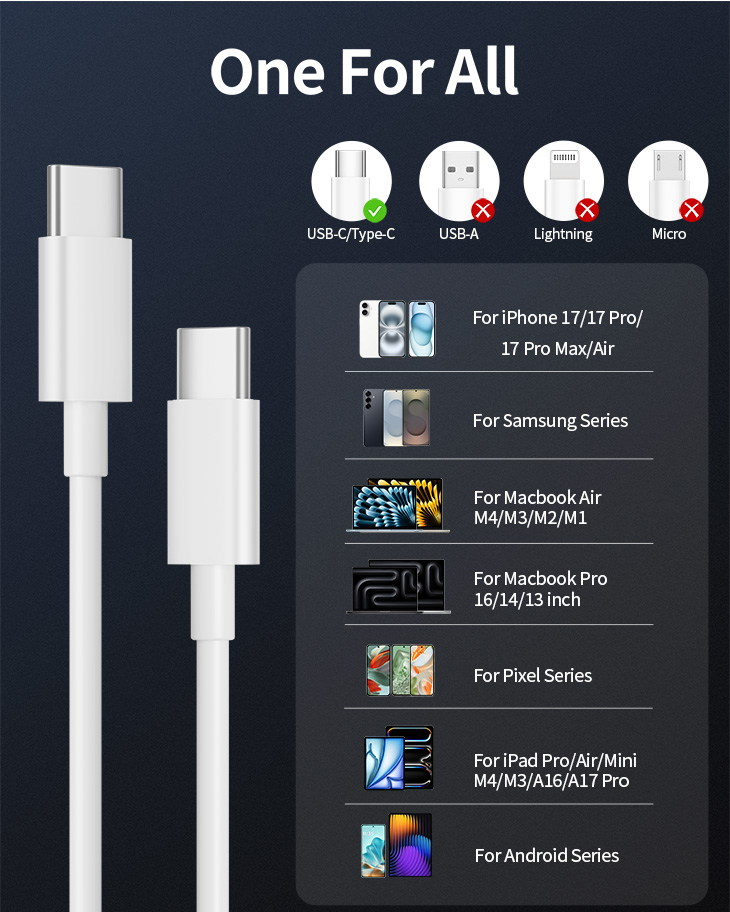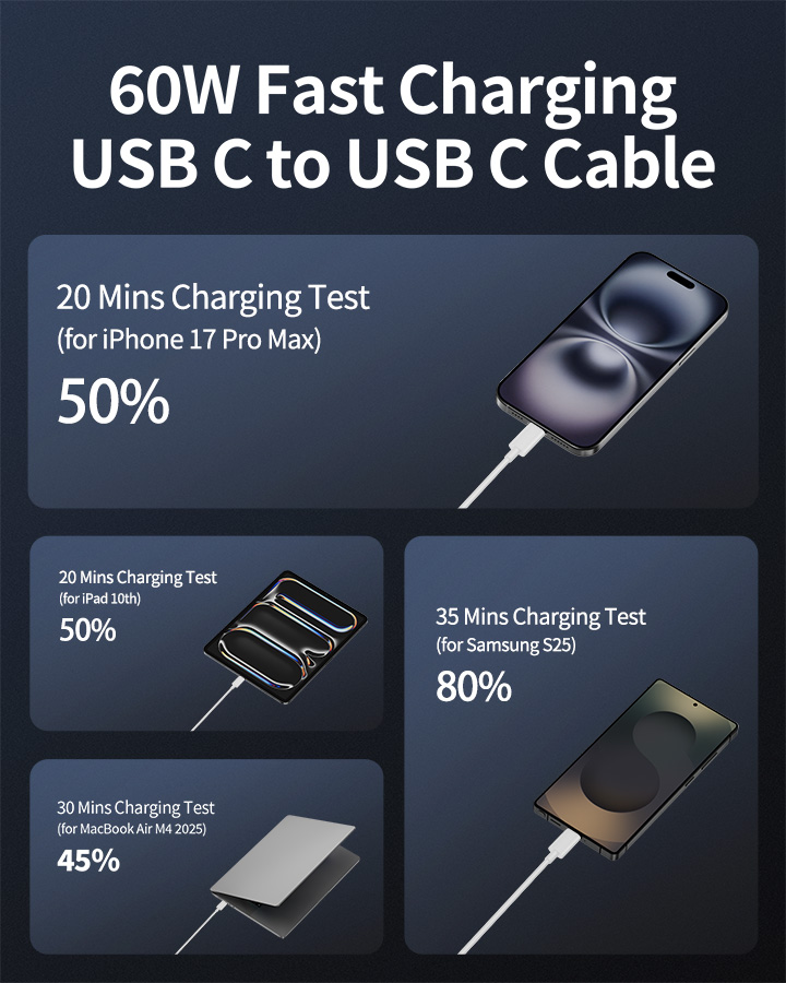 Amazon Launch Day:2025-06-30 60W Fast Charging for iPhone 17: JUNVANG USB C cable provides high-speed charging of up to 60W Max (3A/20V) for most all USB-C devices, and support 480Mbps data sync transfer speed. Charge for iPhone 17 up to 50% and iPad 10th up to 50% in just 20 minutes, help you work efficiently 10FT Long iPhone 17 Charger Cord: 10-Foot length design, convenient for you to charge from a distance on the sofa, in the office, or on the go. Type C charger cord adopting premium wire cores and shielding layer design to enhance anti-interference ability, making charging and data transfer more stable Universal Compatibility: USB C to USB C Cable compatible with iPhone 17/17 Pro/17 Pro Max/Air 2025/16/16 Pro/16 Plus/16 Pro Max/15/15 Pro/15 Plus/15 Pro Max/16e, iPad Pro 13/12.9/11 inch, iPad Air 13/11 inch M3/M2, iPad Air 5th/4th Generation, iPad A16/10th, iPad Mini A17 Pro/6th, MacBook Air/Pro, Samsung Galaxy S25/S24/S23/S22, Google Pixel 9/8/7/6, Moto, LG, Tablet, Android, and more Sturdy & Durability: Built-in laser welding technology ensures that the metal parts are not prone to breakage. The longer mesh tail anti-breakage design enhances the durability of the USB C cord. With 25,000+ times bending test, flexible and durable TPE cable has a longer service life What You Get: 2-Pack 60W 10FT USB-C to USB-C Cable Fast Charger Cord, 2-Year Replacement. Compatible with 20W/40W/45W/60W/100W USB-C Power Adapter (Adapter not included). Note: If you encounter problems with the cable function, please try reverse USB-C plug and try again