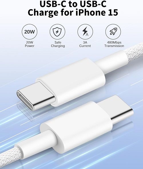 Dual Port High-Speed Charging: USB C charger block provides up to 20W of fast charging for your iPhone, Pad, Android Phones, and other devices. Charge your iPhone 15 up to 50% in just 30 minutes. The USB-C and USB-A dual ports design can charge two devices simultaneously. 6FT Long USB C to C Cable: 6FT USB C to USB C cable with 20W USB C wall charger block fast charging kit can charge your latest iPhone quickly and directly. Friendly and reversible design, maximum current output 3A, up to 480Mbps data transfer speed, 6ft long length enough to charge iPhones and iPads from anywhere. Universal USB C Charger: Fast Charge for iPhone 15/15 Plus/15 Pro/15 Pro Max, iPad Pro 12.9/11 inch 2023/2022/2021/2020/2018, iPad Air 5/4, iPad Mini 6, iPad 10th, AirPods Pro. The Type C fast charging block alos compatible with Samsung Galaxy S23/S22/S21/S20 Ultra, Note 20/Note 10, Google Pixel 7/7 Pro/6/6 Pro/5/4/3 XL, LG G8 G7 G6 G5 and More. Safe & Reliable: USB C power adapter built-in intelligent IC chip can automatically identify the device and output the optimal current. Multiple safety protection systems ensure the safety of your devices, avoiding over-current, over-voltage, overheating, overcharge and short circuit, giving you peace of mind when charging. What You Get: 3-Pack 20W Dual Port USB C Wall Charger Block and 3-Pack 6FT Long USB C to C Fast Charging Cable.